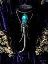 Blue dyed candle quartz & carborundum ritual rattler rhythm shaker, maraca and magical musical scepter/wand necklace.