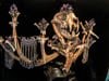 Amethyst, Blue/Purple Aura Quartz Bobcat Embellished Crystallized Antler Crown With Deer Vertebrae, Turkish Bellydance Coins and Labradorite Rosary Chain.